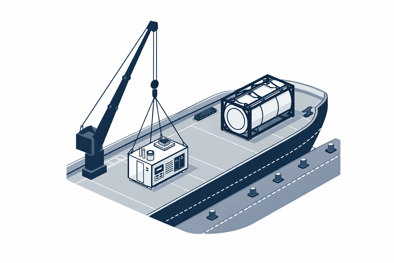 Each vessel undergoes a dedicated feasibility study to determine system placement, storage configuration and impact on cargo capacity before any commitment is made.